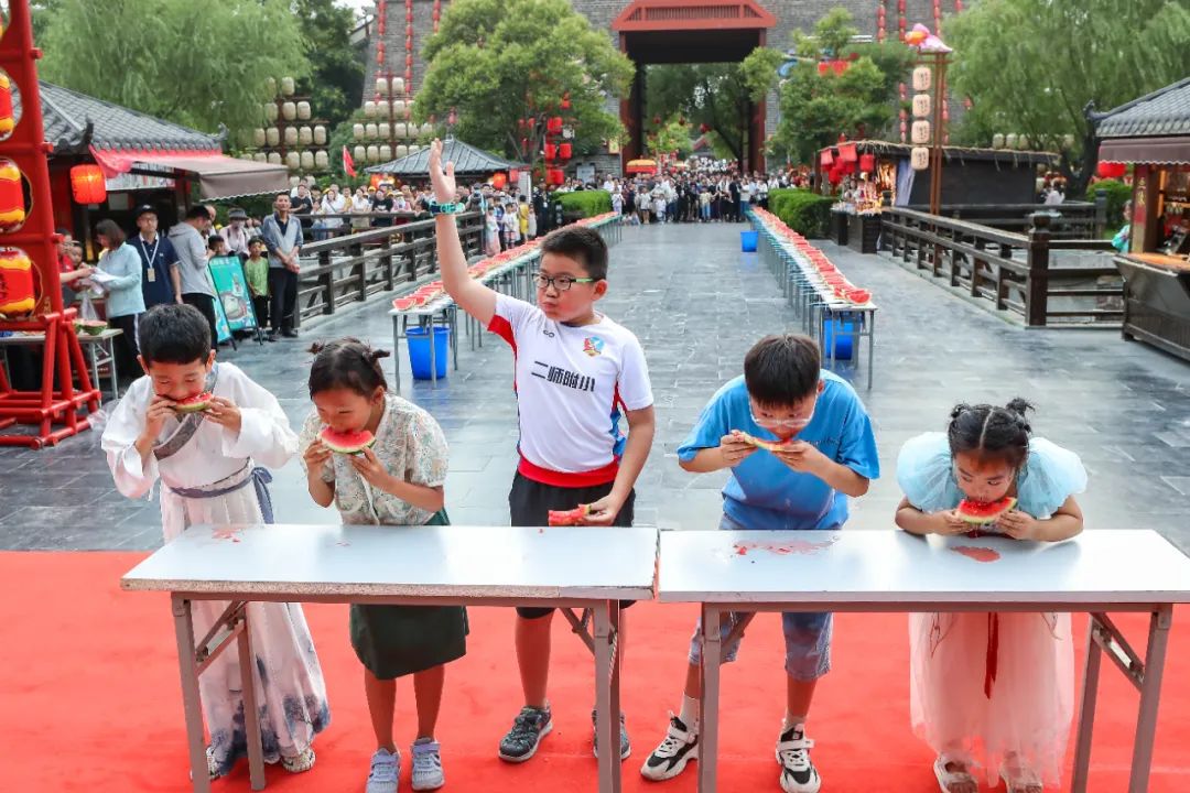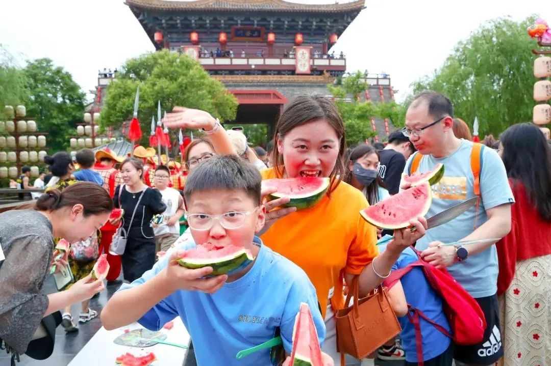 拥有《大宋·东京梦华》晚会票,“御林军大战吃瓜群众”免费参与!每周六晚19:00上善门前,热闹有趣的吃瓜大赛准时开始!不仅有免费的西瓜,获胜者还有礼物相送哦!
